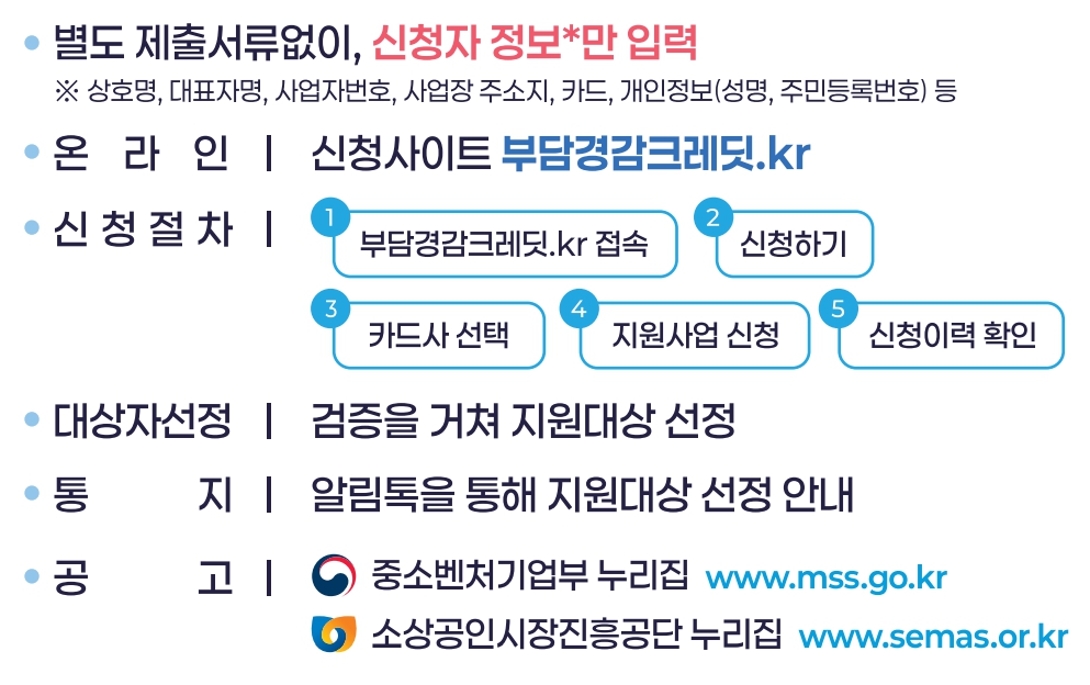 경제가 어려운 요즘 정부에서 소상공인들의 부담을 줄여주고자 <소상공인 부담경감 크레딧 지원 사업>을 진행한다고 합니다.