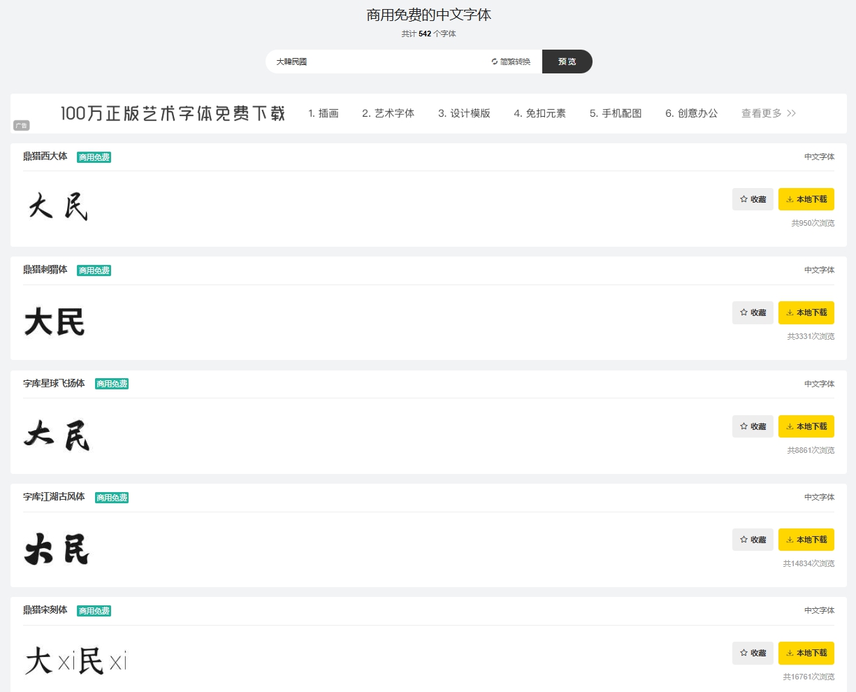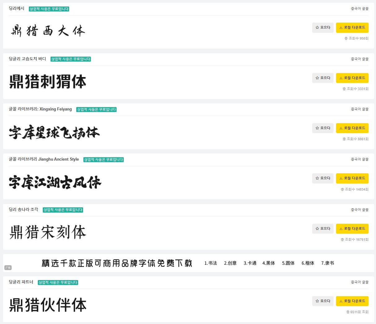 3. 수많은 중국어 무료 서체가 검색됐습니다.